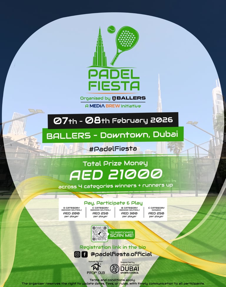 Welcome to the Padel Fiesta - an initiative by Media Brew and organised by Ballers - a premium padel tournament designed to bring together passion, performance, and the city’s buzzing sporting culture.